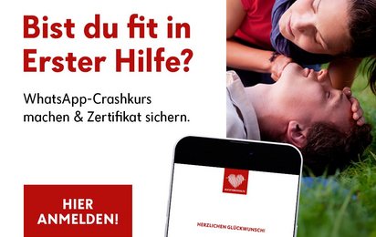 Starte 2026 mit etwas, das wirklich zählt: unserem kostenlosen WhatsApp-Crashkurs in Erster Hilfe. In wenigen Minuten kannst du dein Wissen auffrischen und mit Zertifikat abschließen – direkt am Smartphone.