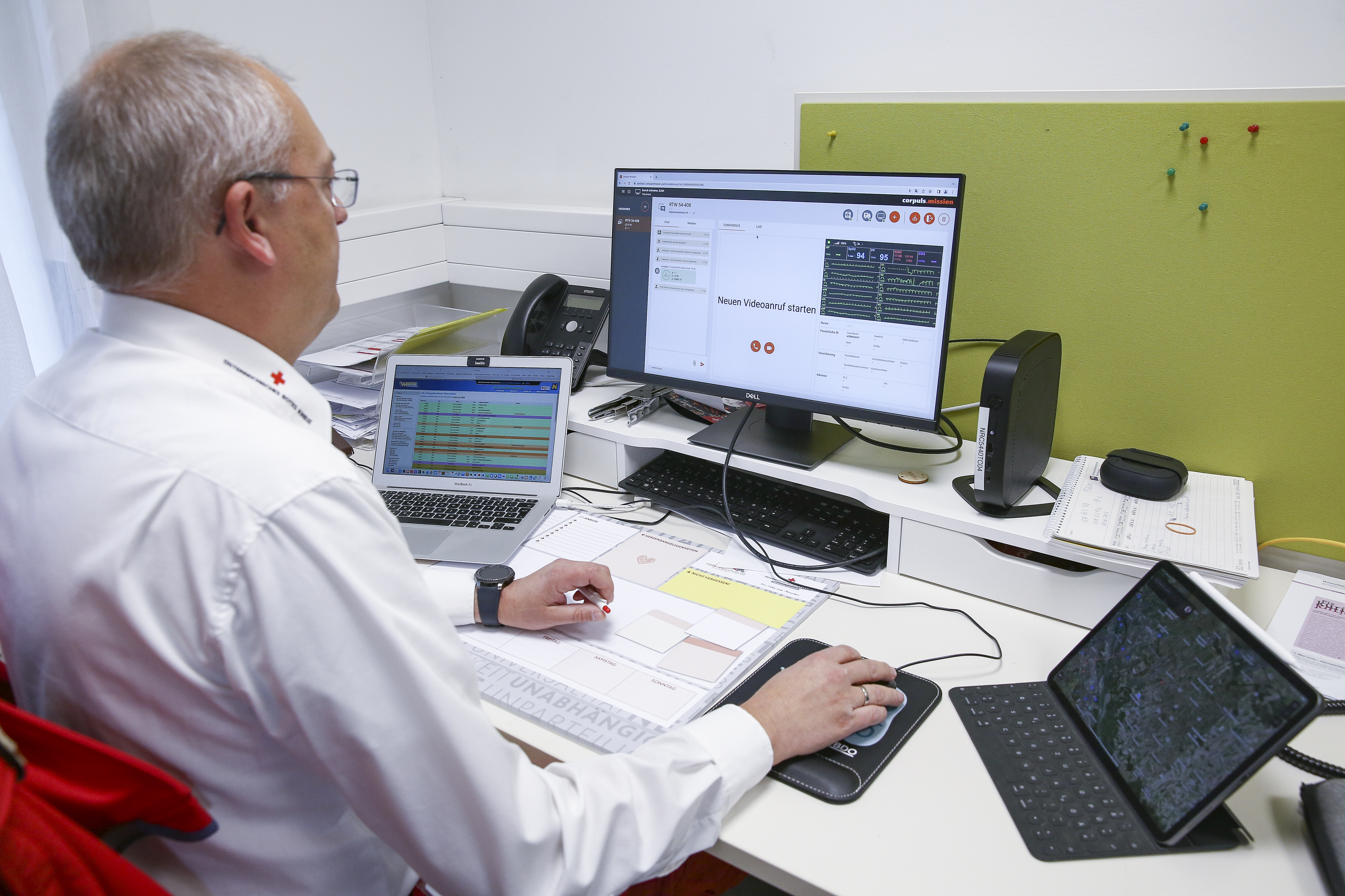 Das Rote Kreuz Niederösterreich arbeitet mit dem System corpuls.mission, das einen sehr einfachen Zugang sowohl für die Sanitäter:innen als auch für die Ärzt:innen bietet. Die Sanitäter:innen können sich vor Ort mit dem Smartphone oder Tablet mit den Telenotärzt:innen verbinden und entweder Browser-basiert oder via App kommunizieren und die notwendigen Daten übermitteln. Bei der Software handelt es sich um ein zertifiziertes Medizinprodukt, das zudem auch die notwendigen Voraussetzungen für den notwendigen Datenschutz schafft.