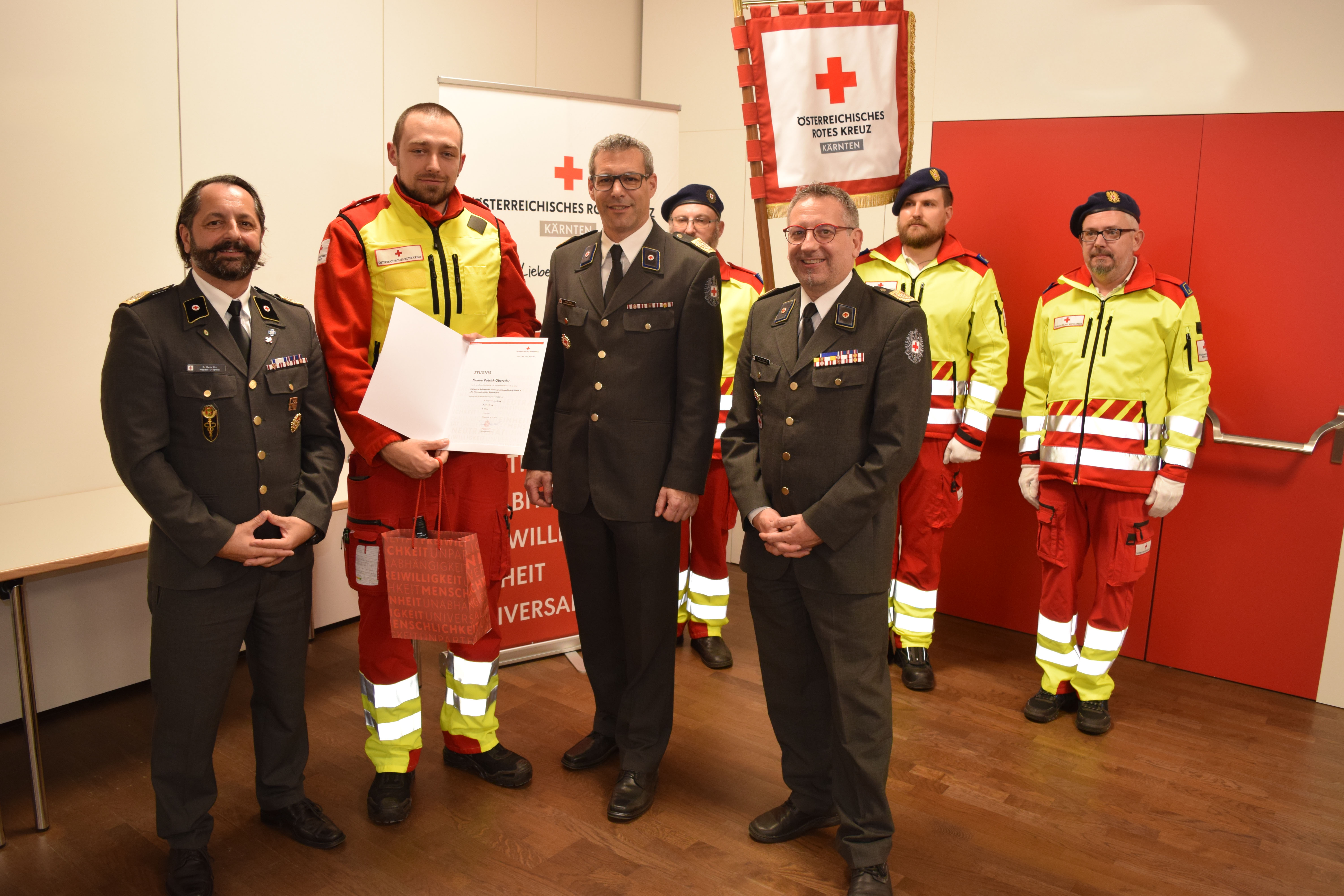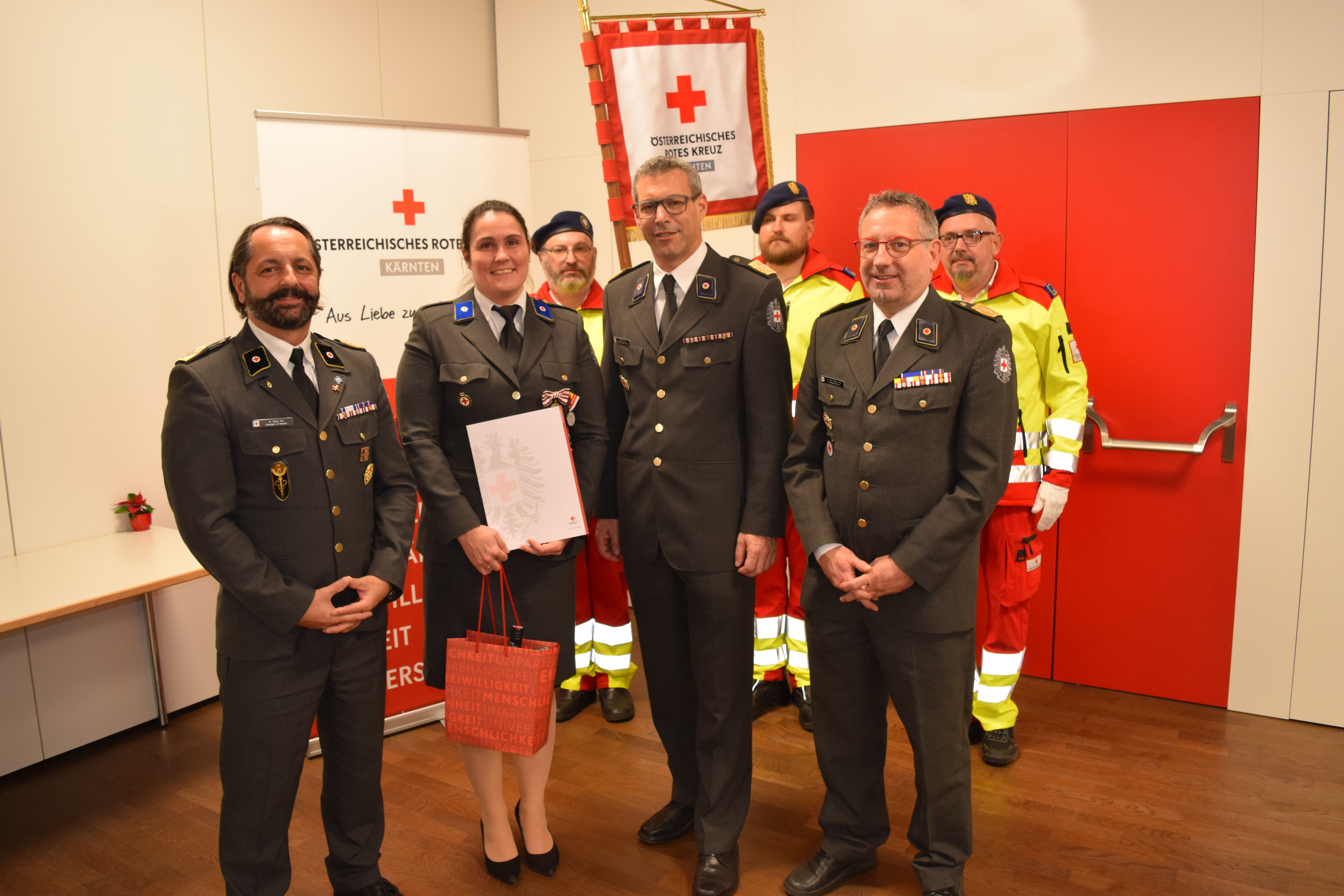 In seiner Ansprache betonte Dr. Martin Pirz, Präsident des Kärntner Roten Kreuzes, die besondere Verantwortung, die mit der Führung im Roten Kreuz einhergeht. Er erinnerte daran, dass es in leitenden Funktionen nicht um persönliche Befindlichkeiten gehe, sondern um das große Ganze: „Führung im Roten Kreuz bedeutet Vorbild sein, Haltung zeigen und Entscheidungen stets am Wohl der Menschen und am Auftrag unserer Organisation auszurichten.“ Mit diesen Worten bestärkte er die neuen Offiziere in ihrer wichtigen Rolle innerhalb der Rotkreuz-Gemeinschaft.