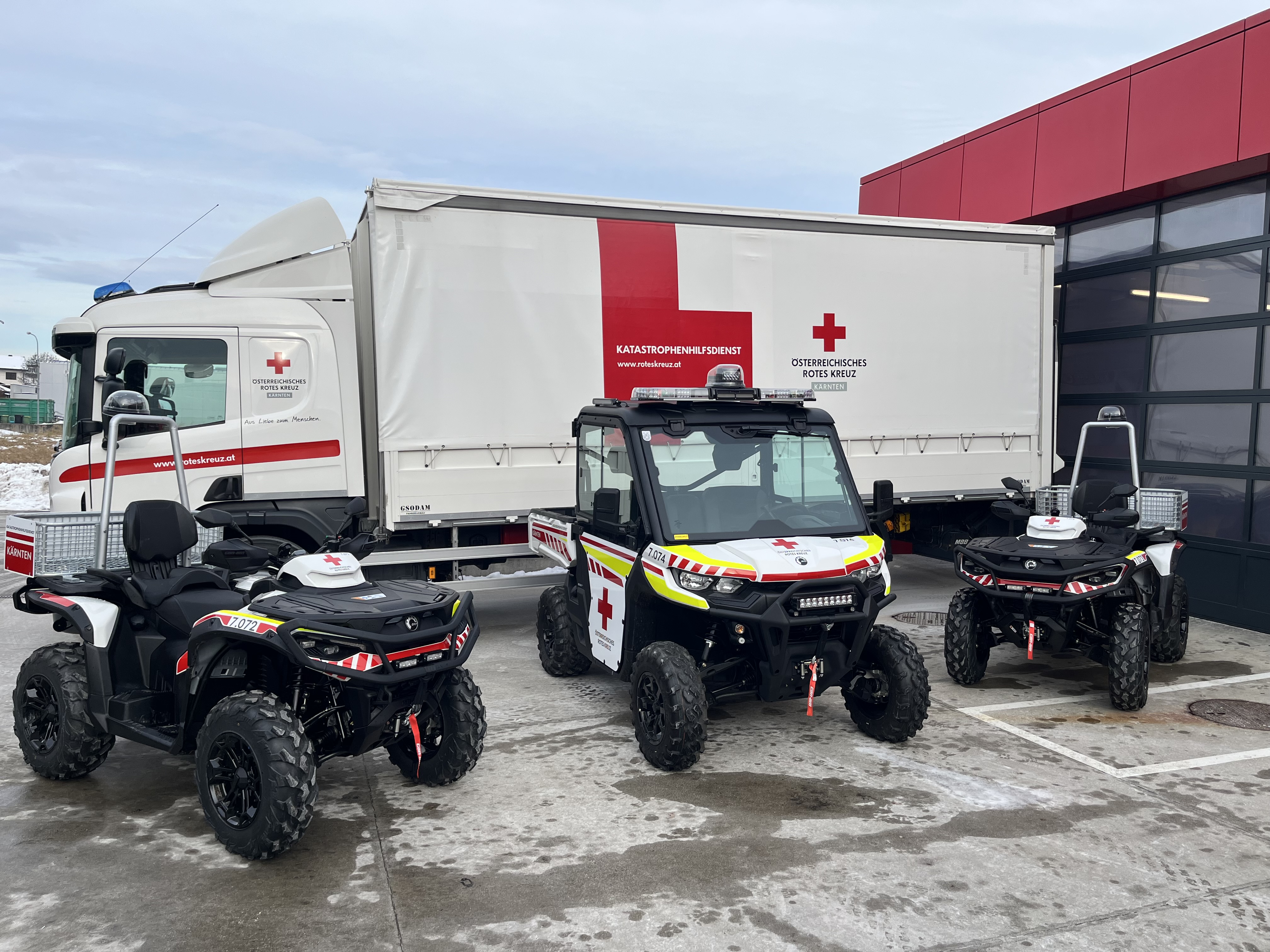 Um im Bedarfsfall rasch reagieren zu können, sind die Fahrzeuge strategisch im Bundesland stationiert: ein Quad in Unterkärnten, ein weiteres in Oberkärnten und das Side-by-Side Vehicle im Logistikzentrum Klagenfurt. Sie können landesweit angefordert und flexibel eingesetzt werden – unabhängig davon, aus welchem Bereich die Unterstützung benötigt wird.