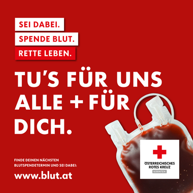 Mit Beginn der kalten Jahreszeit startet das Rote Kreuz Kärnten eine neue Blutspendekampagne unter dem Motto „Tu’s für …“. Sie ruft dazu auf, Blut zu spenden – für jemanden, den du kennst. Für jemanden, den du liebst. Oder für dich selbst.