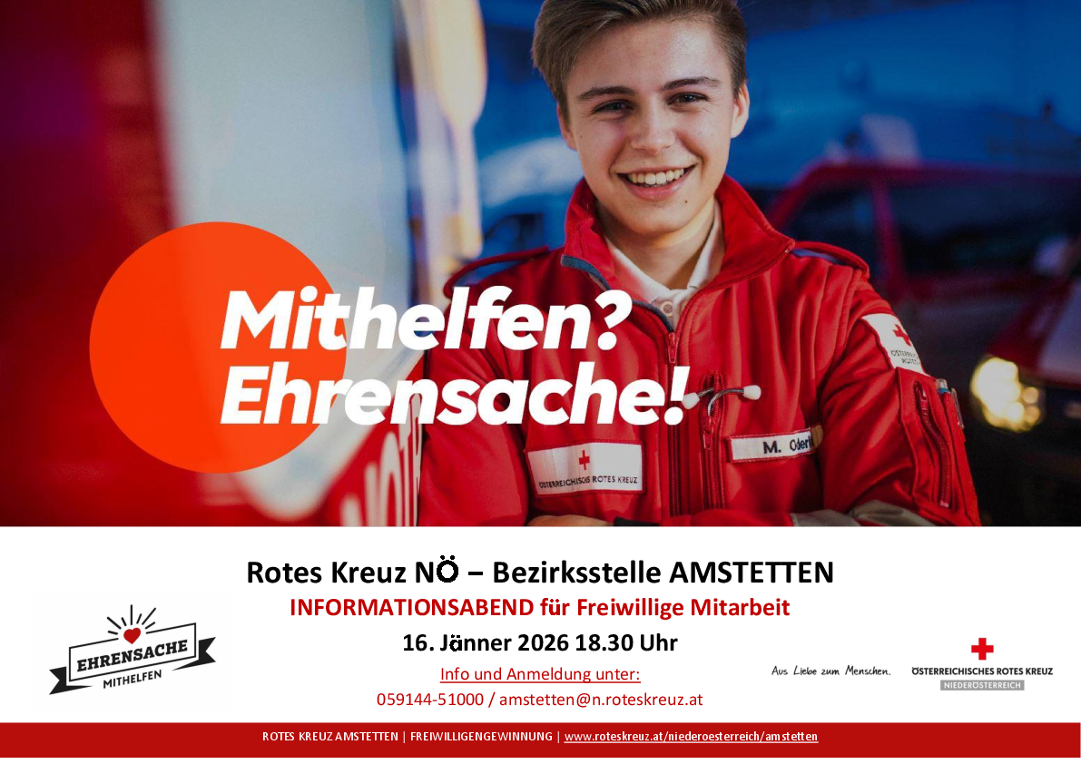 Dann laden wir dich herzlich zu unserem Infoabend für ehrenamtliche Mitarbeit an der Bezirksstelle Amstetten ein!