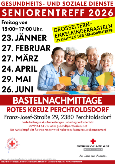 Dies wird an zwei Nachmittagen pro Woche im Rahmen von Seniorennachmittagen getan. Hier werden geistige und motorische Fähigkeiten gefördert. Diese finden jeden Dienstag und Donnerstag von 14:00 bis 17:00 Uhr statt im Bleib Aktiv Zentrum, Friedrich Schiller-Straße 24-26 in Brunn am Gebirge statt.