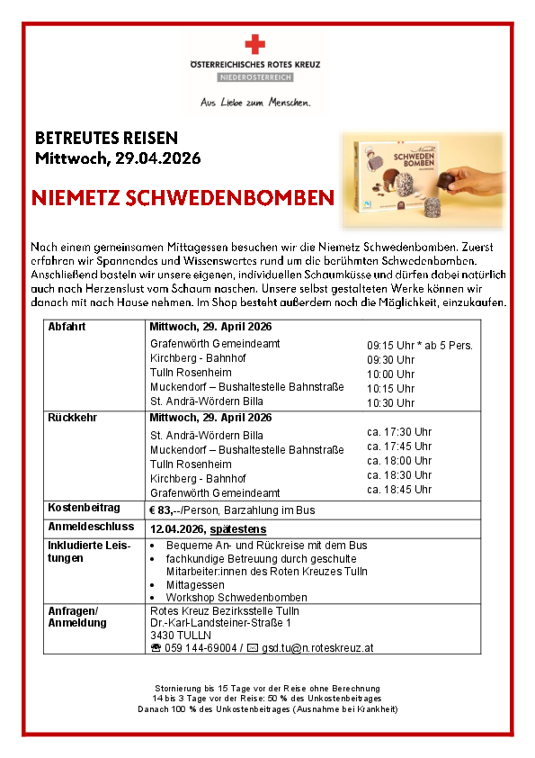 Am 29.04.2026 führt uns unsere Fahrt zur Niemetz Schwedenbomben Erlebniswelt.