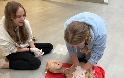 Anlässlich der Woche der Wiederbelebung haben die Schülerinnen und Schüler der 1. bis 4. Klassen der digiTNMS Altheim gezeigt, wie wichtig Erste Hilfe ist. Unter Anleitung der Erste-Hilfe-Lehrbeauftragten Frau Stempfer und Frau Zaglmayr lernten sie, wie man im Notfall richtig reagiert und eine Herzdruckmassage durchführt – denn jede Minute kann über Leben und Tod entscheiden.