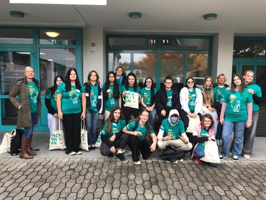 Mit großem Engagement sprachen die Schüler:innen Kundinnen und Kunden an und baten um den Kauf von haltbaren Lebensmitteln und Hygieneartikeln, die direkt im Anschluss gespendet wurden.