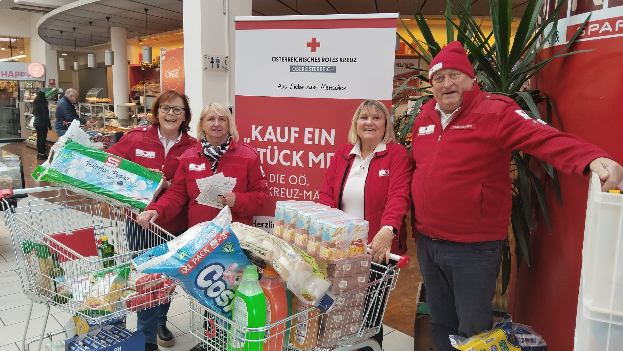 Ein besonderer Dank gilt den teilnehmenden Handelsbetrieben, die die Aktion ermöglicht haben, sowie den freiwilligen Mitarbeiter:innen des Roten Kreuzes, die den gesamten Aktionstag über im Einsatz waren. Die Rotkreuz-Märkte werden ausschließlich von freiwilligen Helfer:innen betrieben und sind auf Sachspenden angewiesen.