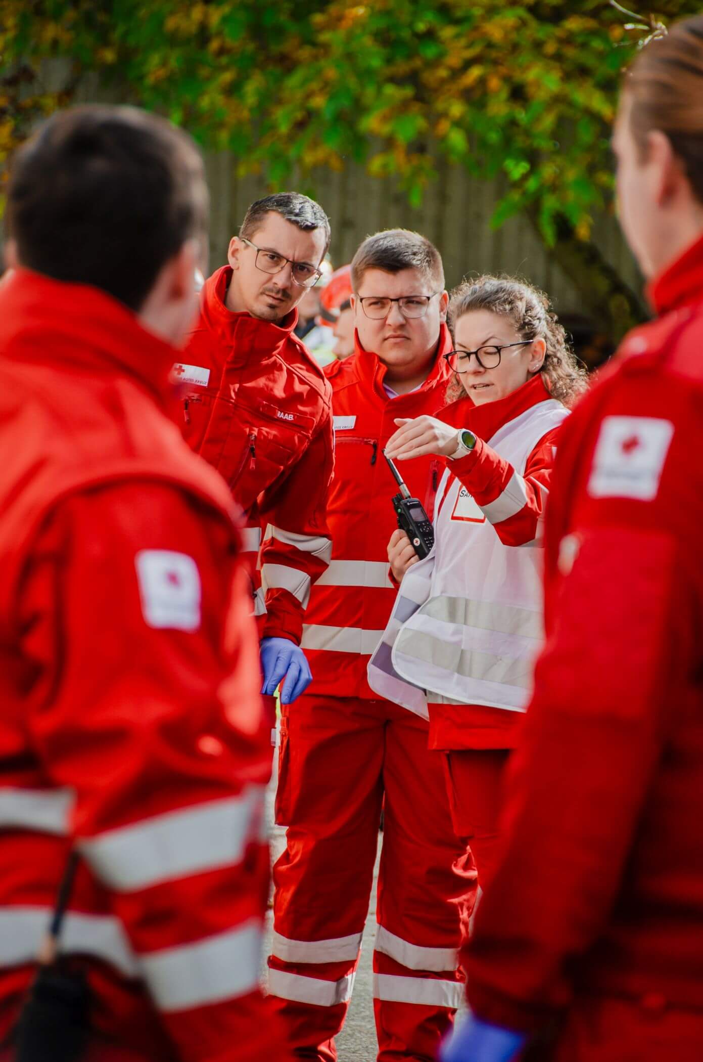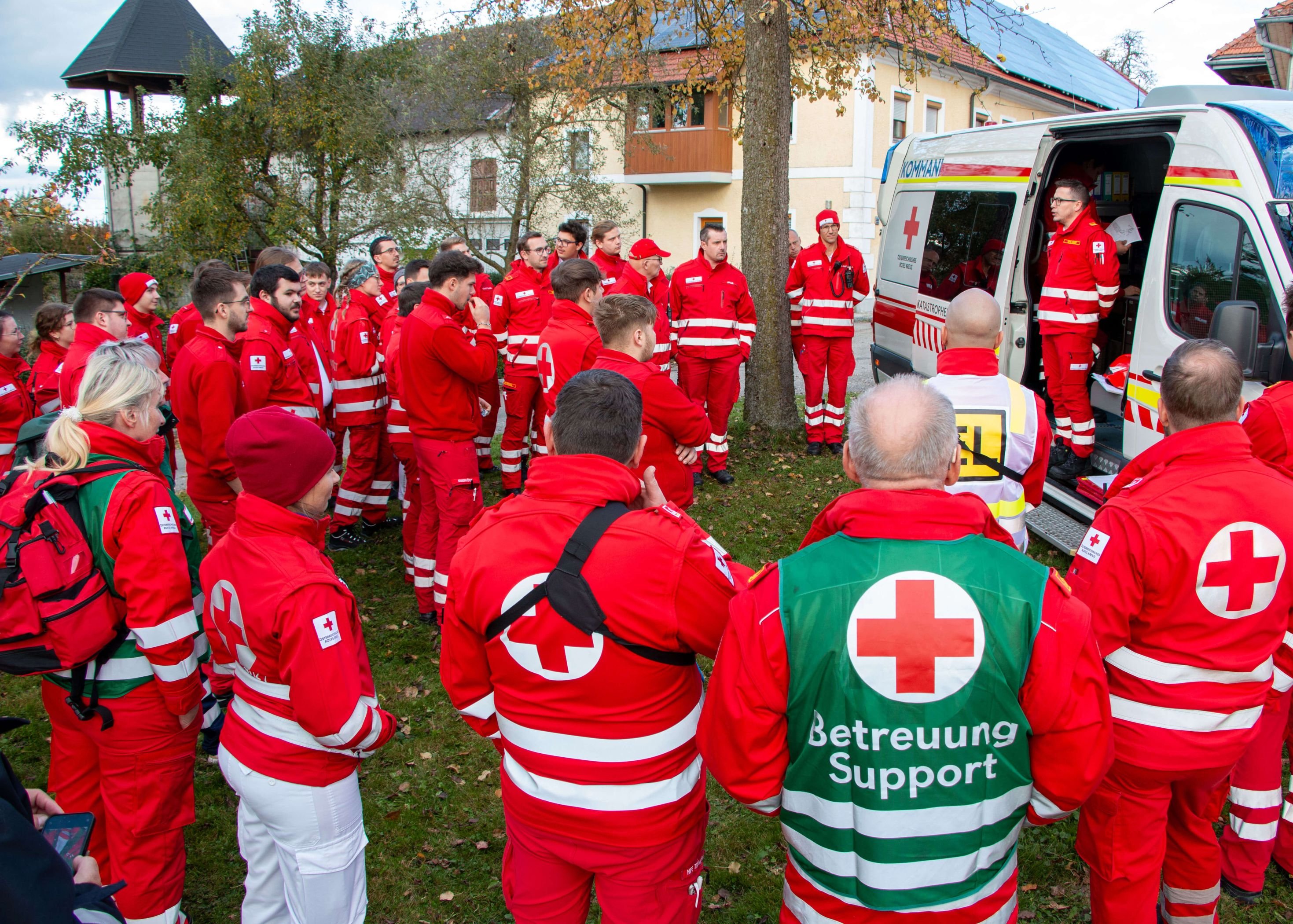 Bei der Übung waren neun Rettungsautos, zwei Notarztfahrzeuge, der Hausärztliche Notdienst, ein Einsatzleitfahrzeug, eine Suchhundestaffel, ein Drohnenteam und das Kriseninterventionsteam, allesamt hauptamtliche und freiwillige Rotkreuz-Mitarbeiter, sowie elf Feuerwehren der Region, darunter ein Drohnenteam, im Einsatz.
