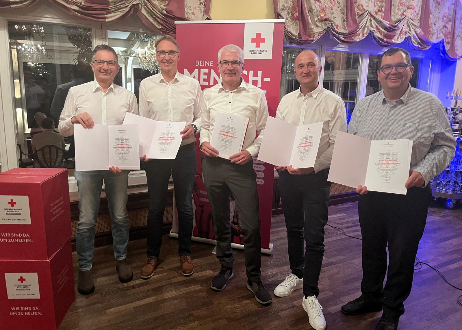 Bei der diesjährigen Dienstjubiläumsfeier des Roten Kreuzes Oberösterreich im Pöstlingberg Schlössl in Linz wurden zahlreiche Mitarbeiter:innen wurden für ihre beeindruckende berufliche Laufbahn geehrt. Zu den Geehrten gehörten auch Johann Leitner (30 Jahre), Bernhard Stockinger (25 Jahre), Martin Ratzenböck (30 Jahre), Josef Standhartinger (30 Jahre) und Rainer Trawöger (20 Jahre) aus unserem Bezirk. Wir gratulieren herzlich!