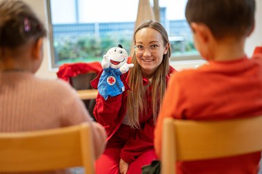 ROKO mit dem Roten Kreuz am Bauch und seinem roten Cape am Rücken besucht die Schulanfänger in den Kindergärten. Er bringt ihnen bei, wie sie Erste Hilfe leisten und ihr Selbstbewusstsein stärken. Wie kann man Kinder auf gefährliche Situationen im Alltag aufmerksam machen? Dieser Frage ist das Jugendrotkreuz nachgegangen und hat das Projekt ROKO ins Leben gerufen. Kinder sollen sich im Kindergarten grundlegendes Wissen aneignen können. Dies geschieht in altersgerechter Weise mit dem Superhelden ROKO, der als flauschige Handpuppe hilft, wichtige Informationen zu vermitteln. Spielerisch wird eine gefährliche Situation durchbesprochen, wobei ROKO immer weiß, wie man sich richtig verhält. Dazu bekommen alle Freiwilligen eine Broschüre mit einer Geschichte, anhand derer eine solche Situation nachgespielt werden kann. Außerdem werden die Kinder spielerisch an einen Erste-Hilfe Koffer sowie an das Rettungsauto herangeführt. Für diesen Zweck hat das Rote Kreuz ein eigenes ROKO-Mobil, das von den Kindern betreten und erkundet werden kann. Dabei sollen die Kleinen etwaige Ängste überwinden, um zu lernen einen Notruf abzusetzen.