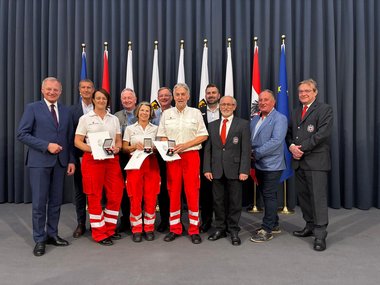 Freiwilliges Engagement im Dienste der Menschlichkeit ist keine Selbstverständlichkeit und verdient besondere Anerkennung. Für ihren langjährigen Einsatz wurden verdiente Mitarbeiterinnen und Mitarbeiter des Oberösterreichischen Roten Kreuzes mit der OÖ. Rettungsdienstmedaille in Bronze, Silber oder Gold ausgezeichnet. Die feierliche Verleihung fand am 15. September 2025 im Steinernen Saal des Linzer Landhauses statt und wurde von Landeshauptmann Mag. Thomas Stelzer vorgenommen.
