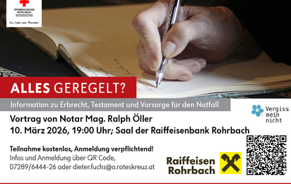 Alles geregelt? Notar Mag. Ralph Öller informiert über Maßnahmen rund um Erbschaft, Testament und Vorsorge für den Notfall