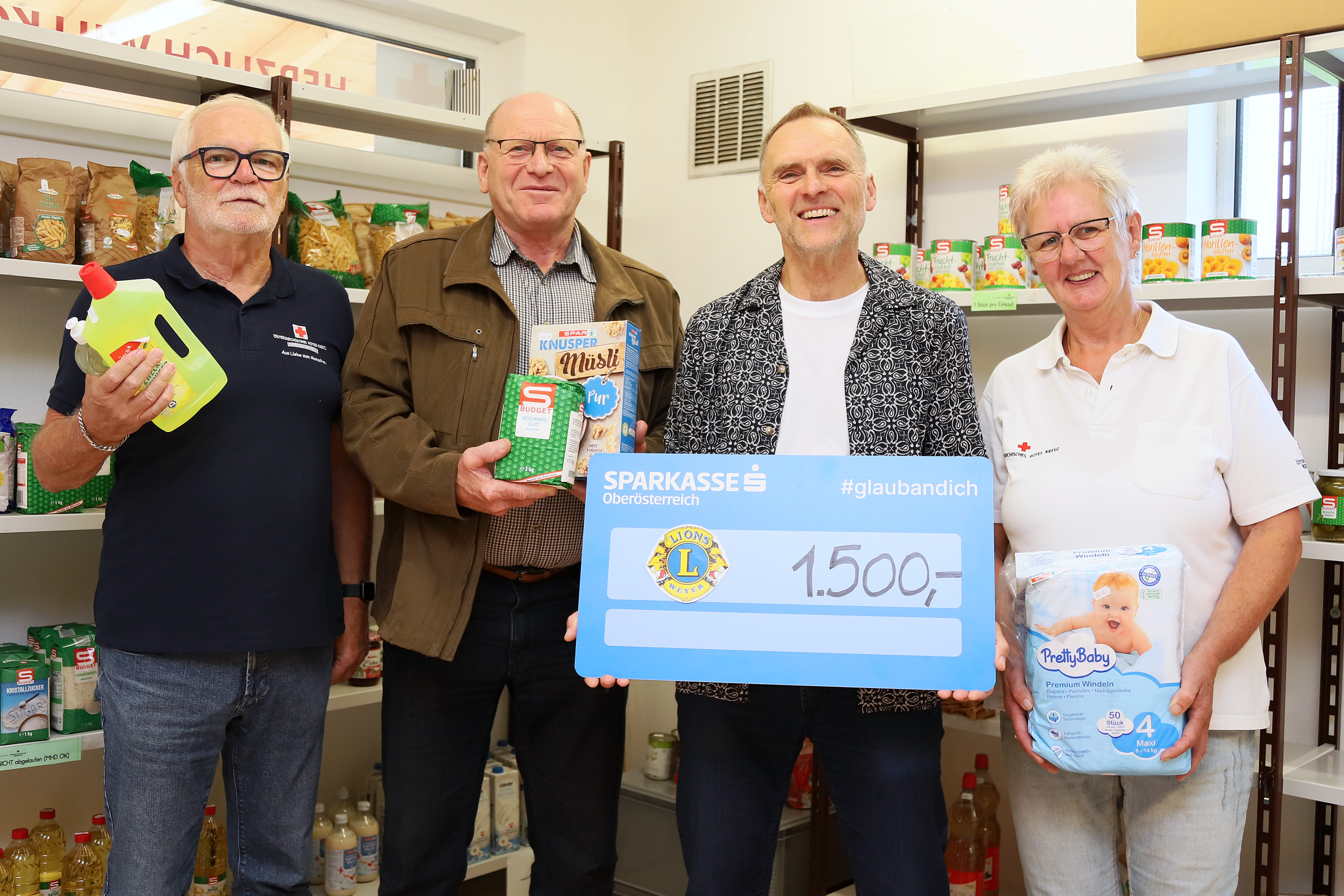 Der Lions-Club Weyer ist seit der Eröffnung des Rotkreuz-Marktes in Weyer im Kreise der regelmäßigen Unterstützer. Bei einem Vor-Ort-Besuch Ende August, konnten Präsident Rudolf Brandner und Kassier Ernst Kupfer neuerlich Warengutscheine im Wert von 1.500,- Euro an das Rotkreuz-Team übergeben.