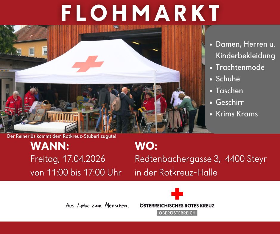 Das Rote Kreuz Steyr-Stadt lädt wieder herzlich zum beliebten Rotkreuz-Flohmarkt ein!