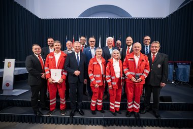 Für ihren langjährigen Einsatz und ihr engagiertes Wirken im Dienst der Mitmenschen dankte Landeshauptmann Mag. Thomas Stelzer am Dienstag, 30. September den Mitarbeiterinnen und Mitarbeitern des Roten Kreuzes. Im feierlichen Rahmen des Steinernen Saals im Landhaus überreichte er ihnen die Oberösterreichische Rettungsdienstmedaille.