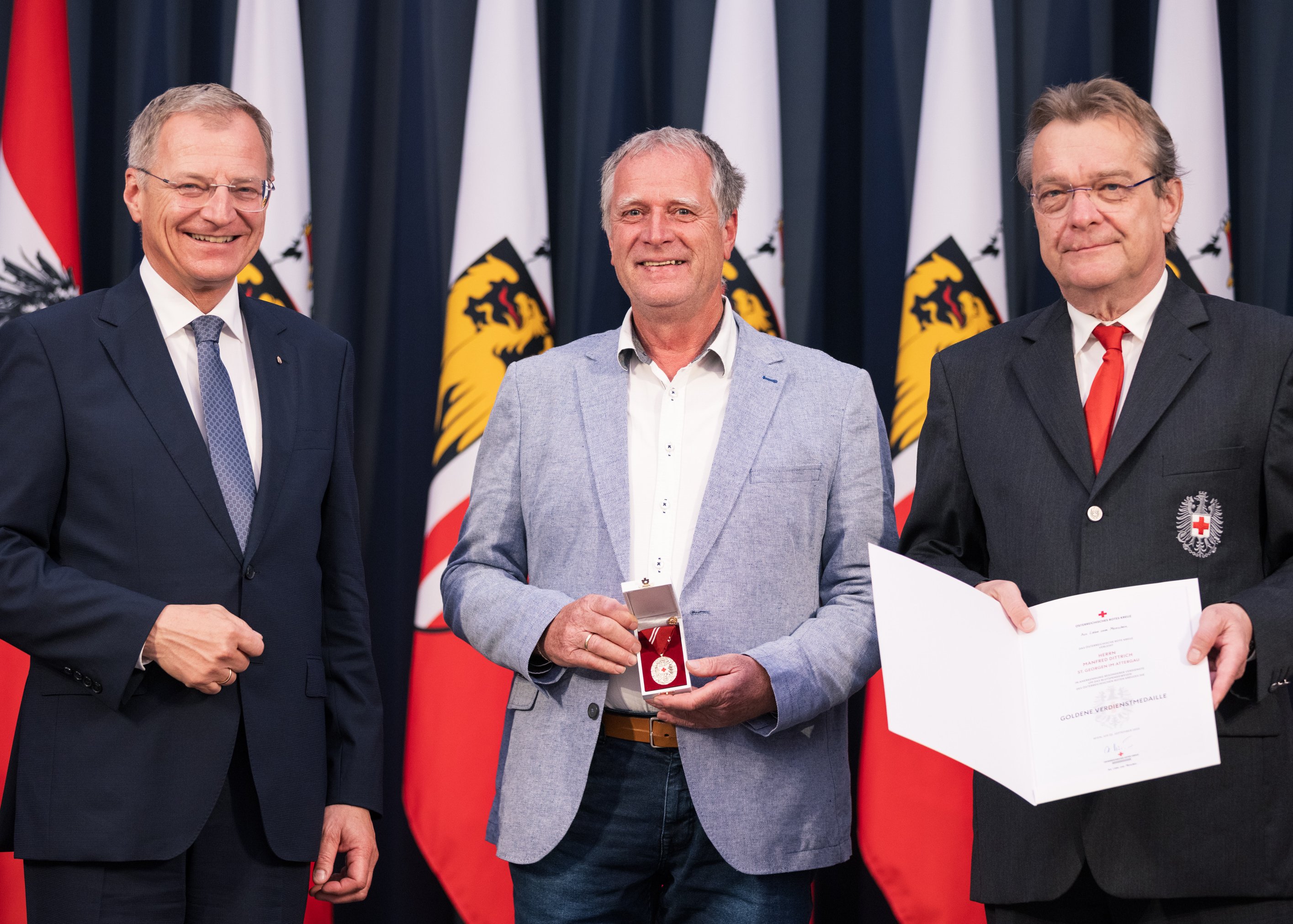 - Landeshauptmann Mag. Thomas Stelzer ehrt Manfred Dittrich für 75 Blutspenden // Credit: Land Oberösterreich