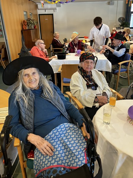 Es wurde gesungen, getanzt und ausgelassen gelacht. Musikalisch wurde der Nachmittag vom Duo „die Nochtroaser“ gestaltet. Für das bunt geschmückte Foyer bedanken wir uns bei unserem Hausmeister Hans Reiter. Das traditionelle Faschingsmenü mit Krapfen und Kaffee zur Jause und Würstel zum Abendessen rundete das Fest ab. Wir freuen uns schon auf nächstes Jahr, wenn es wieder heißt: Mit Saus und Braus zieht der Fasching in unser Haus ein!