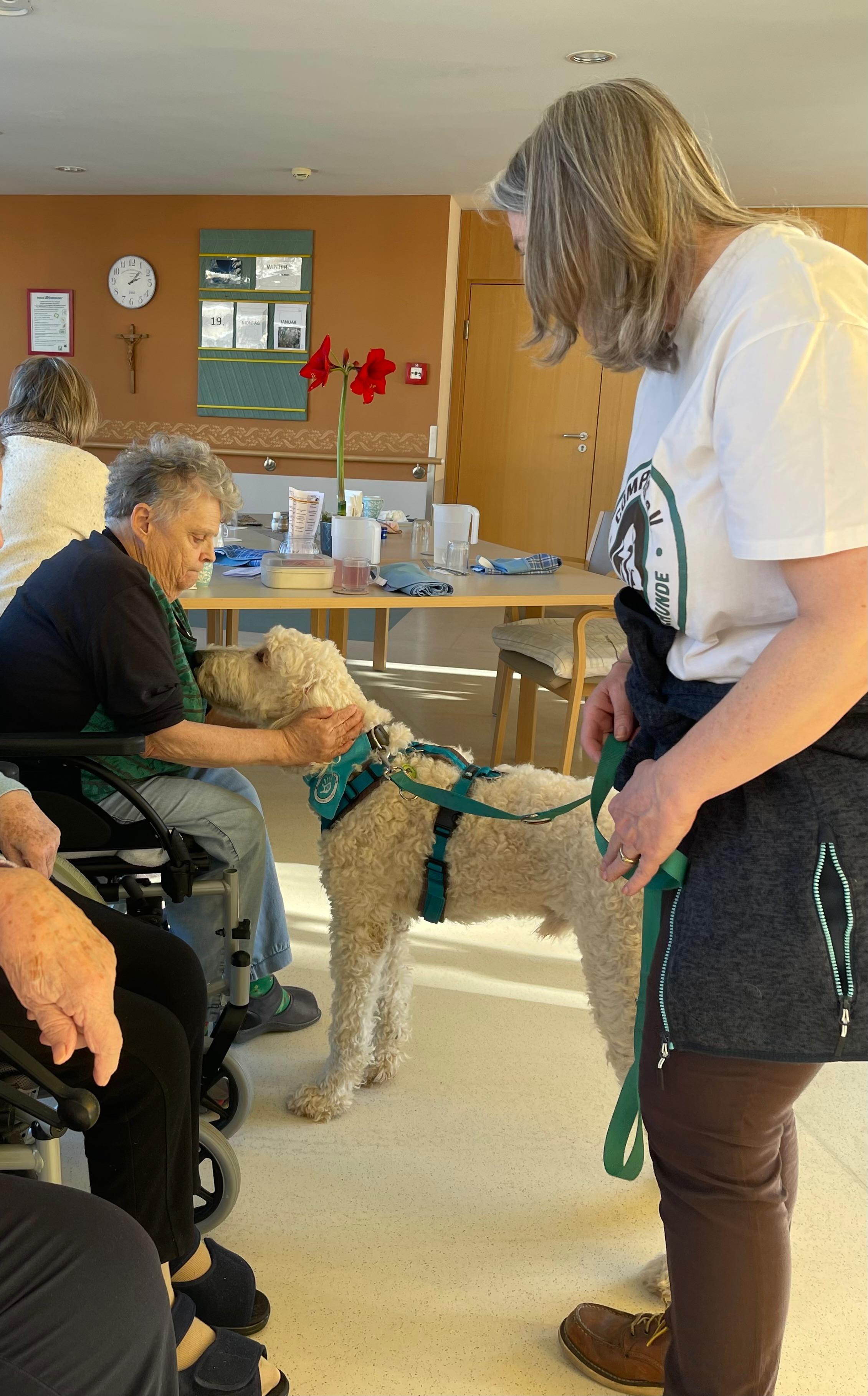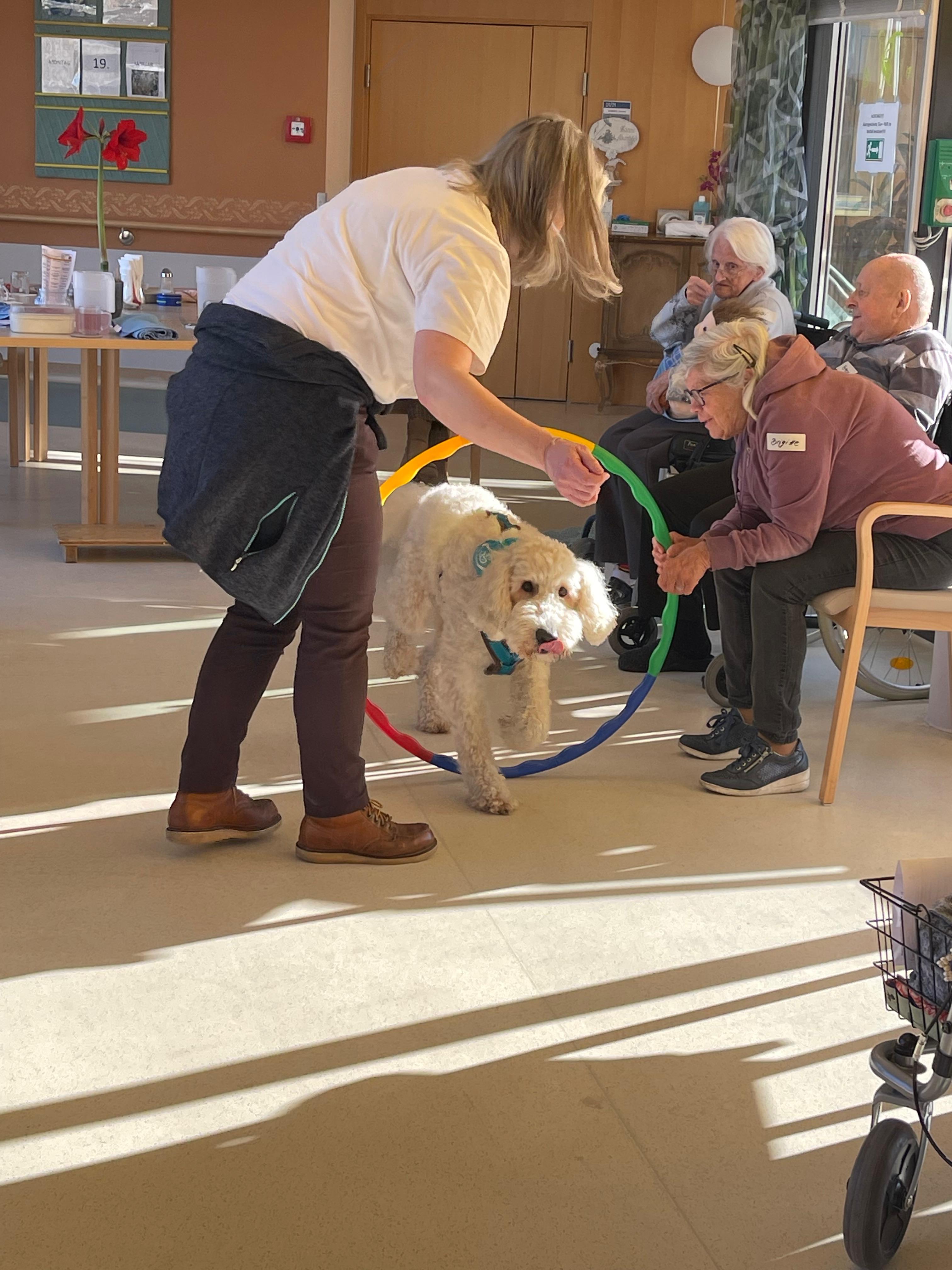 Mit viel Geduld und sichtbarer Freude führten die gut trainierten Hunde zahlreiche Kunststücke vor. Neben den Vorführungen blieb auch genügend Zeit zum Streicheln und für persönliche Begegnungen. Die Nähe zu den Tieren weckte bei vielen Bewohner:innen schöne Erinnerungen und sorgte für viele Gespräche und heitere Momente.