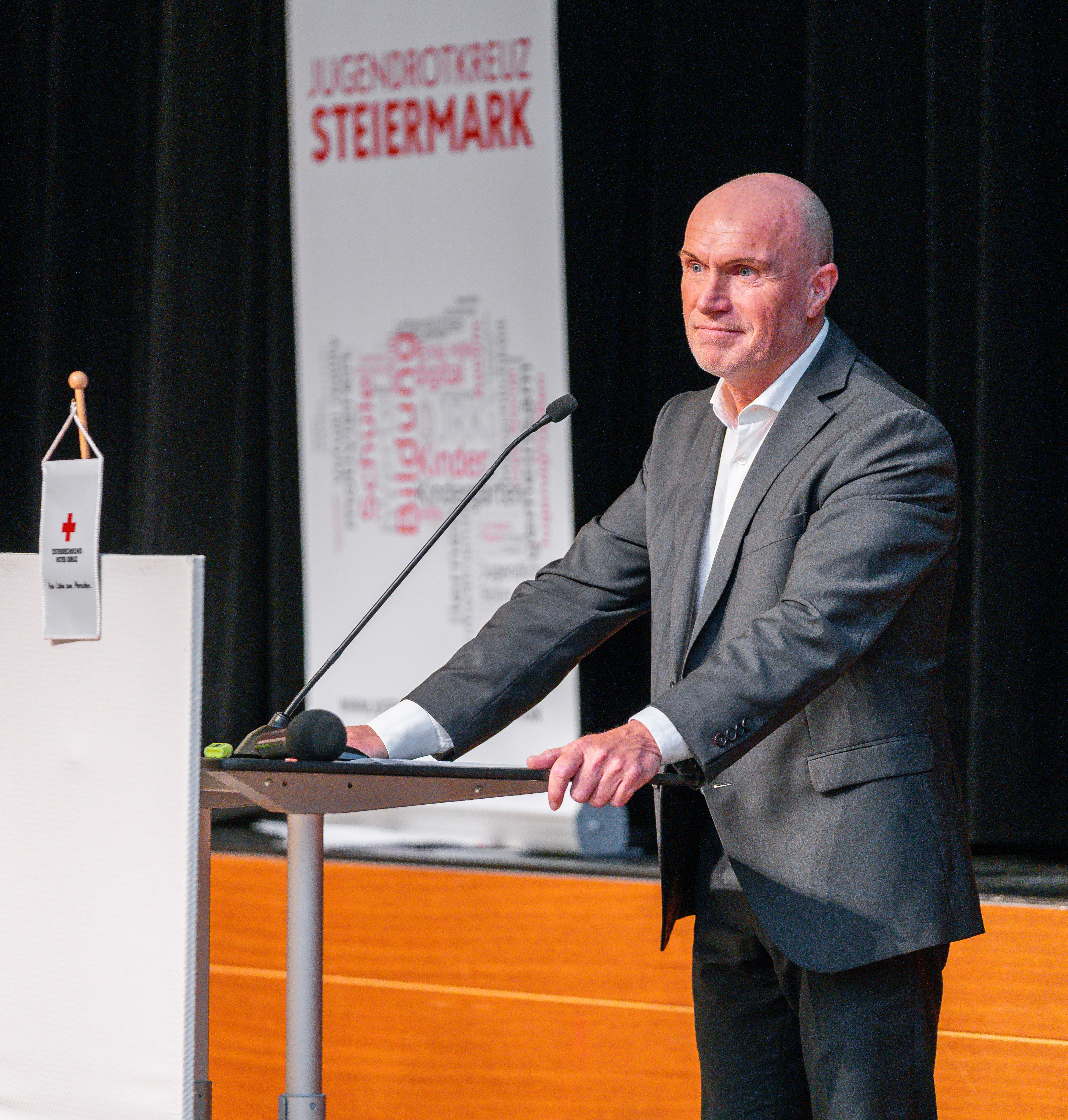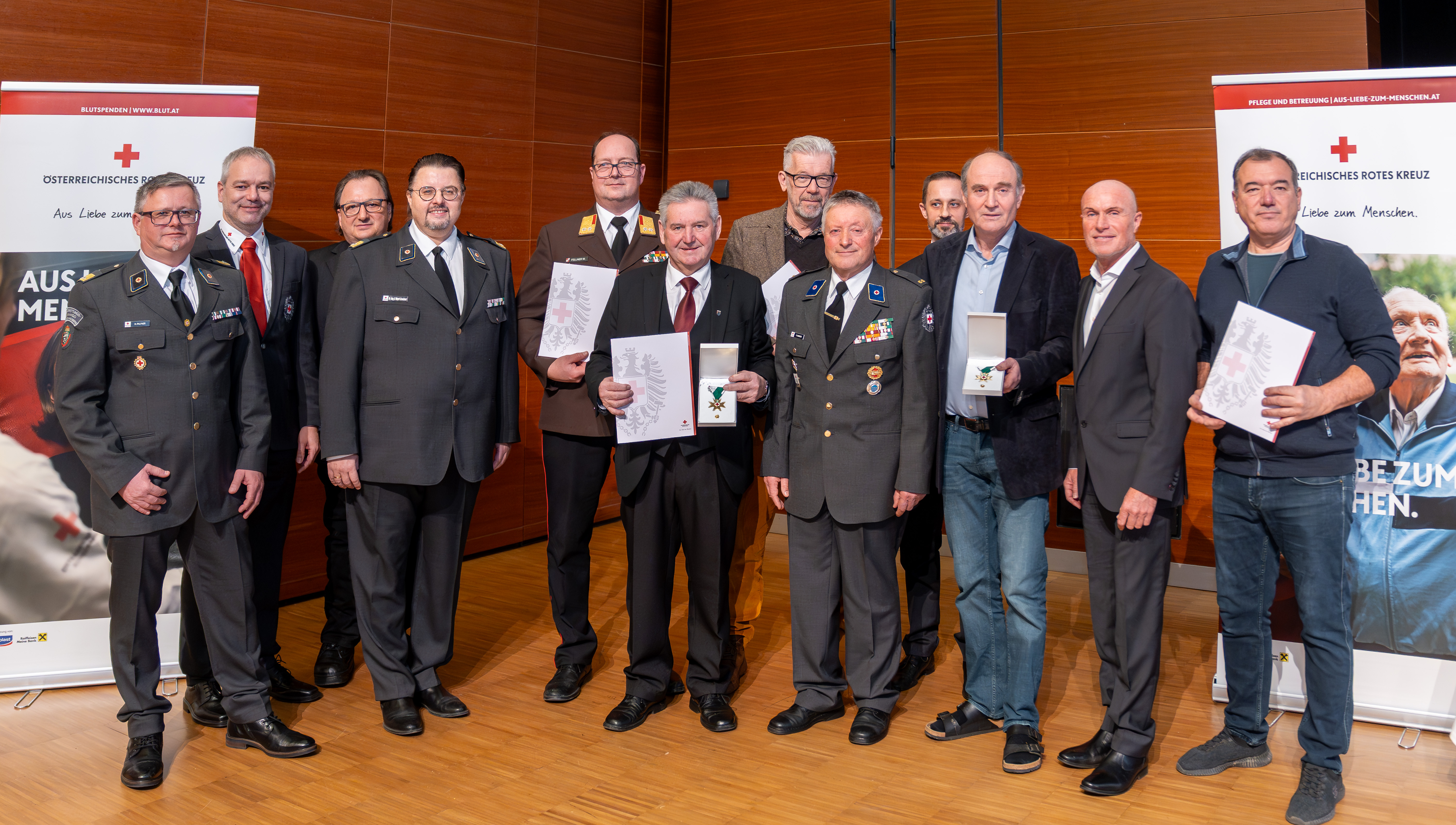 Für besondere Verdienste um das Rote Kreuz erfolgte eine Ehrung mit dem Verdienstzeichen des Landesverbandes. Dieses erhielten in Bronze: Bereichsfeuerwehrkommandant-Stv. BR Wolfgang Fellner für die ausgezeichnete Zusammenarbeit, Dr. Wolfgang Hansel für seine tatkräftige Unterstützung im Bereich der Ausbildung und Petru Rimovetz dafür, dass er im Raum Lannach immer zur Stelle ist, wenn professionelle Fotos angefertigt werde müssen.