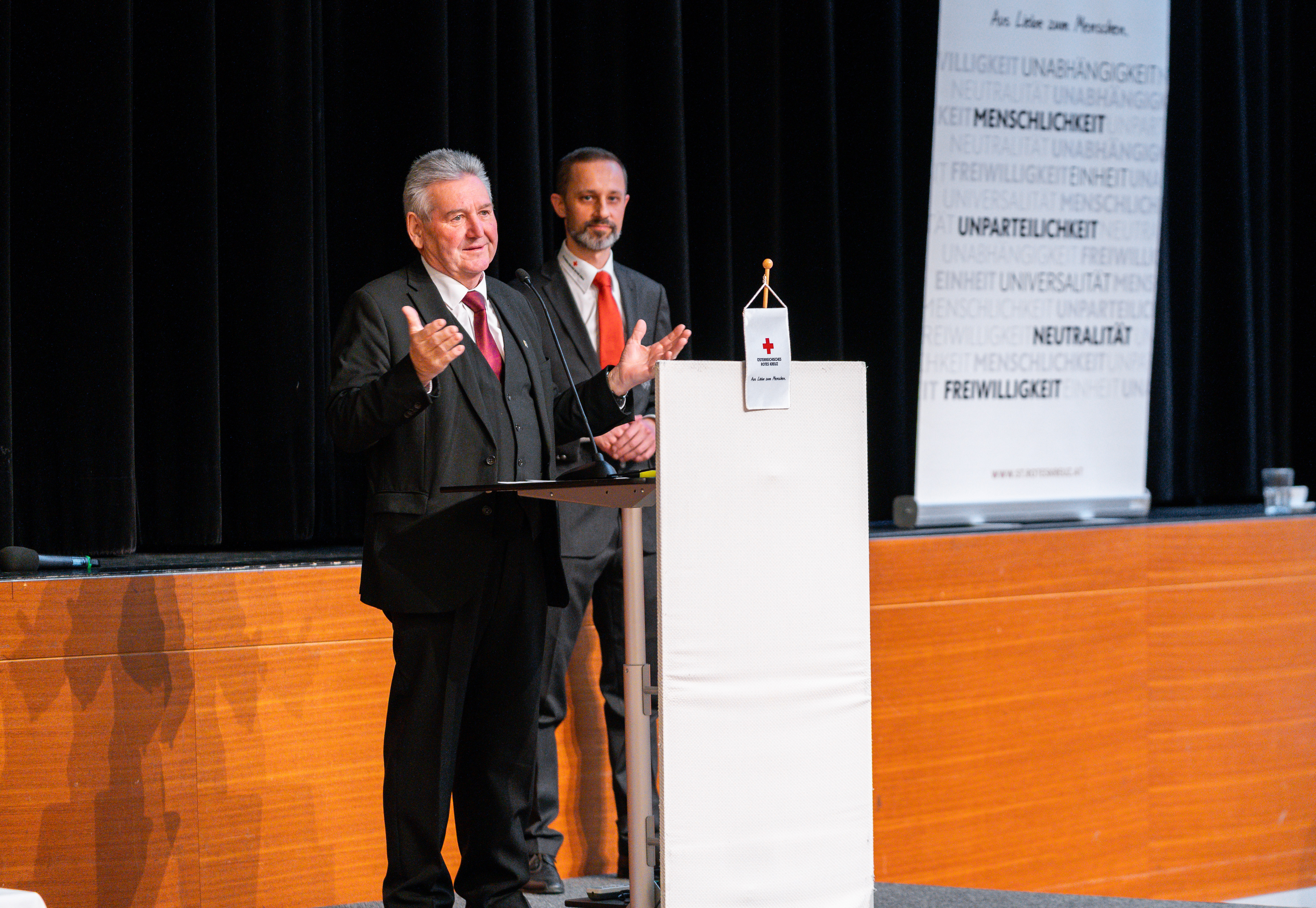 Die Auszeichnung in Gold wurde überreicht an Bürgermeister ÖKR Josef Niggas für die stetige Unterstützung der Rotkreuz-Ortsstelle und darüber hinaus sowie - nach einer kurzen Laudatio - an Dr. Gerhard Fromm für seine langjährige Tätigkeit als Notarzt und die weiterhin gute Zusammenarbeit. In diesem Zusammenhang wurde auch Fritz Hammer als „sein“ ständiger Fahrer und Notfallsanitäter besonders erwähnt.