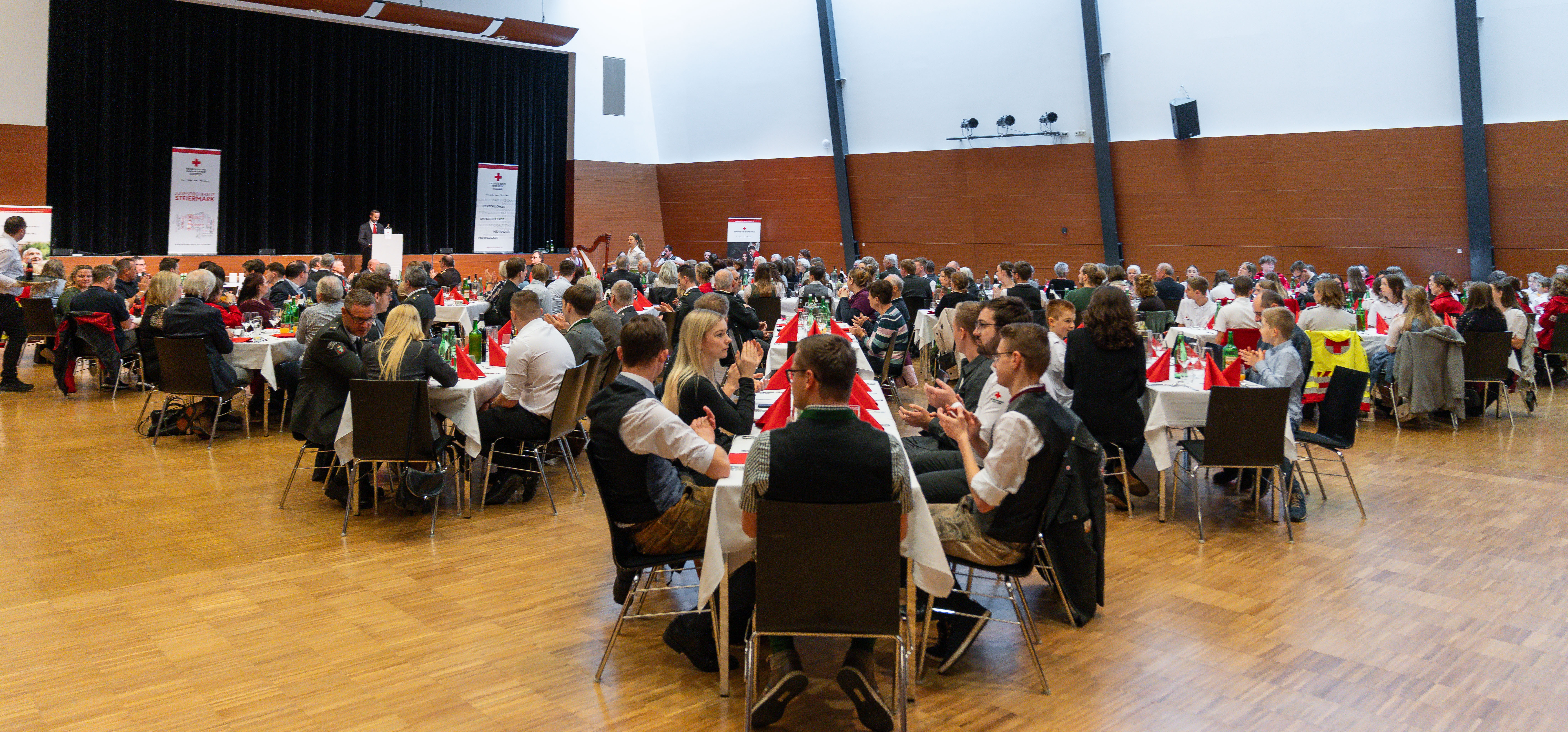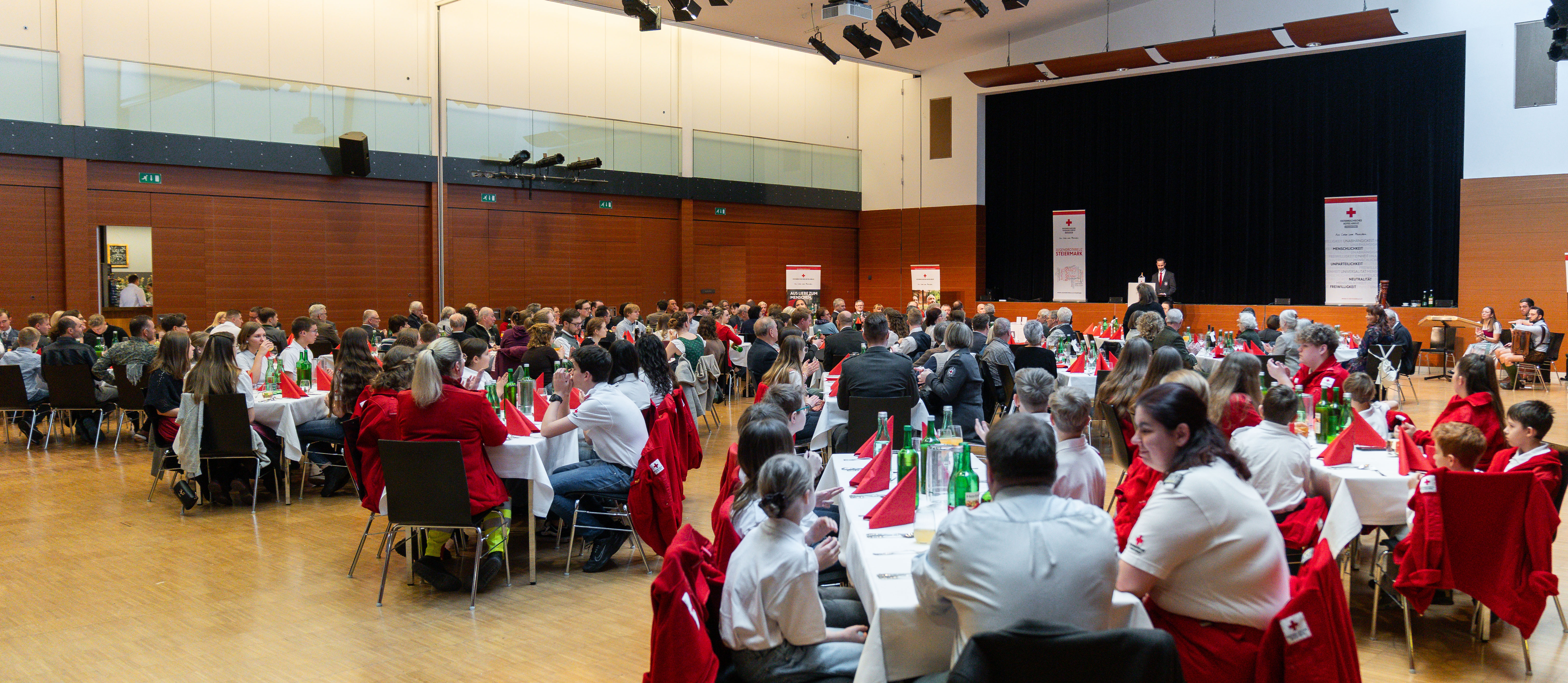 In die Steinhalle Lannach lud am 31. Jänner die Rotkreuz-Bezirksstelle Deutschlandsberg zum diesjährigen Neujahrsempfang. Bezirksstellenleiter Ing. Mag. (FH) Florian Klug konnte über 200 Rotkreuzmitarbeiter/innen aller Leistungsbereiche sowie als Ehrengäste Bezirkshauptfrau-Stv. Mag. Franz Krieger, Hausherrn Bgm. ÖKR Josef Niggas, Bereichsfeuerwehrkommandant-Stv. BR Wolfgang Fellner, den ehemaligen Jugendrotkreuzleiter OSR Peter Pribitzer sowie die für die musikalische Umrahmung zuständige, aus Rotkreuzmitarbeiter/innen bestehende „Die kleine Freitagnachtmusik“ begrüßen.
