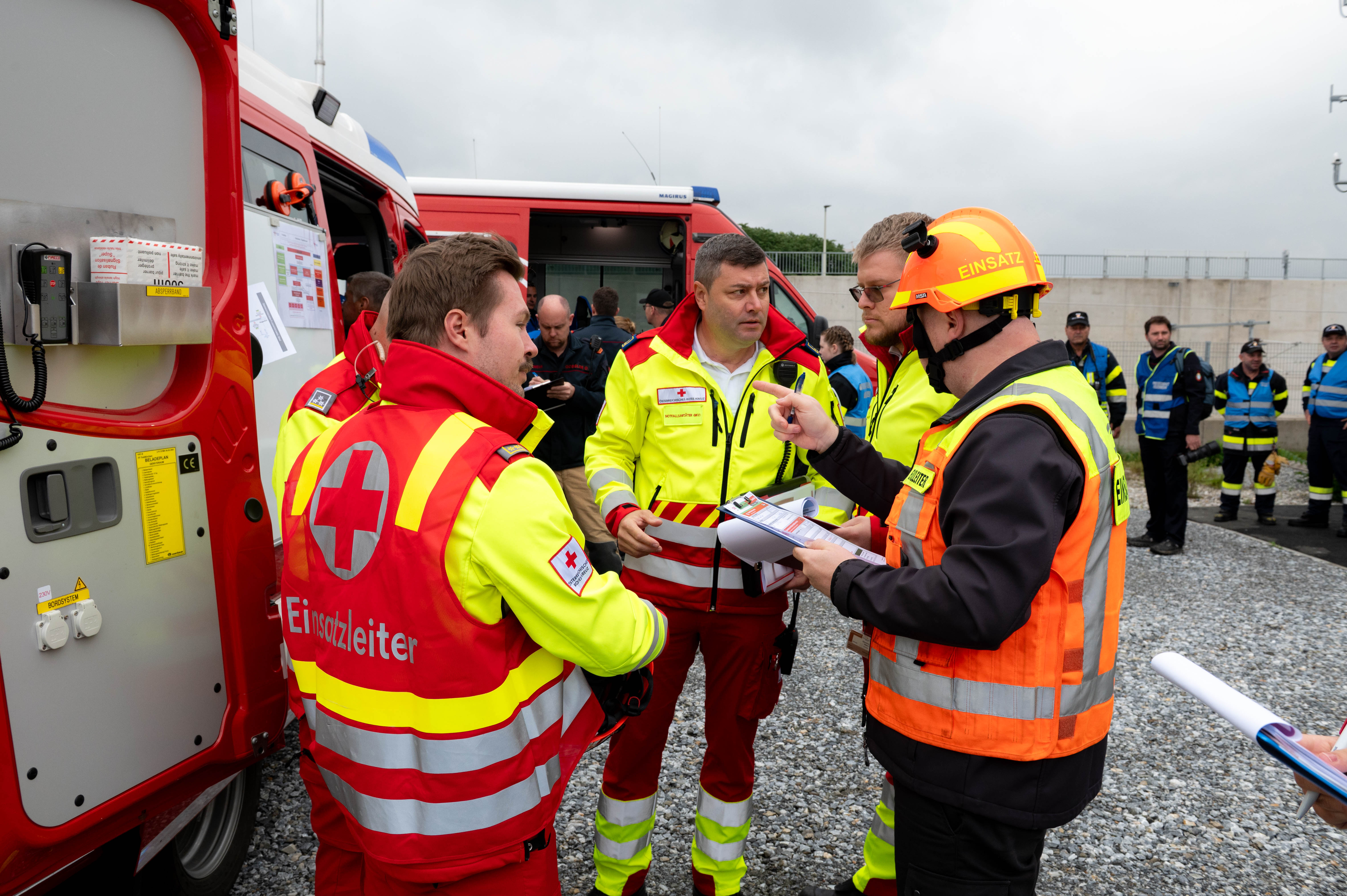 Unterstützt wurden sie von der Polizei, zahlreichen Freiwilligen Feuerwehren und Vertreter:innen der Behörden sowie der ÖBB. Insgesamt nahmen rund 470 Personen an der Übung teil.