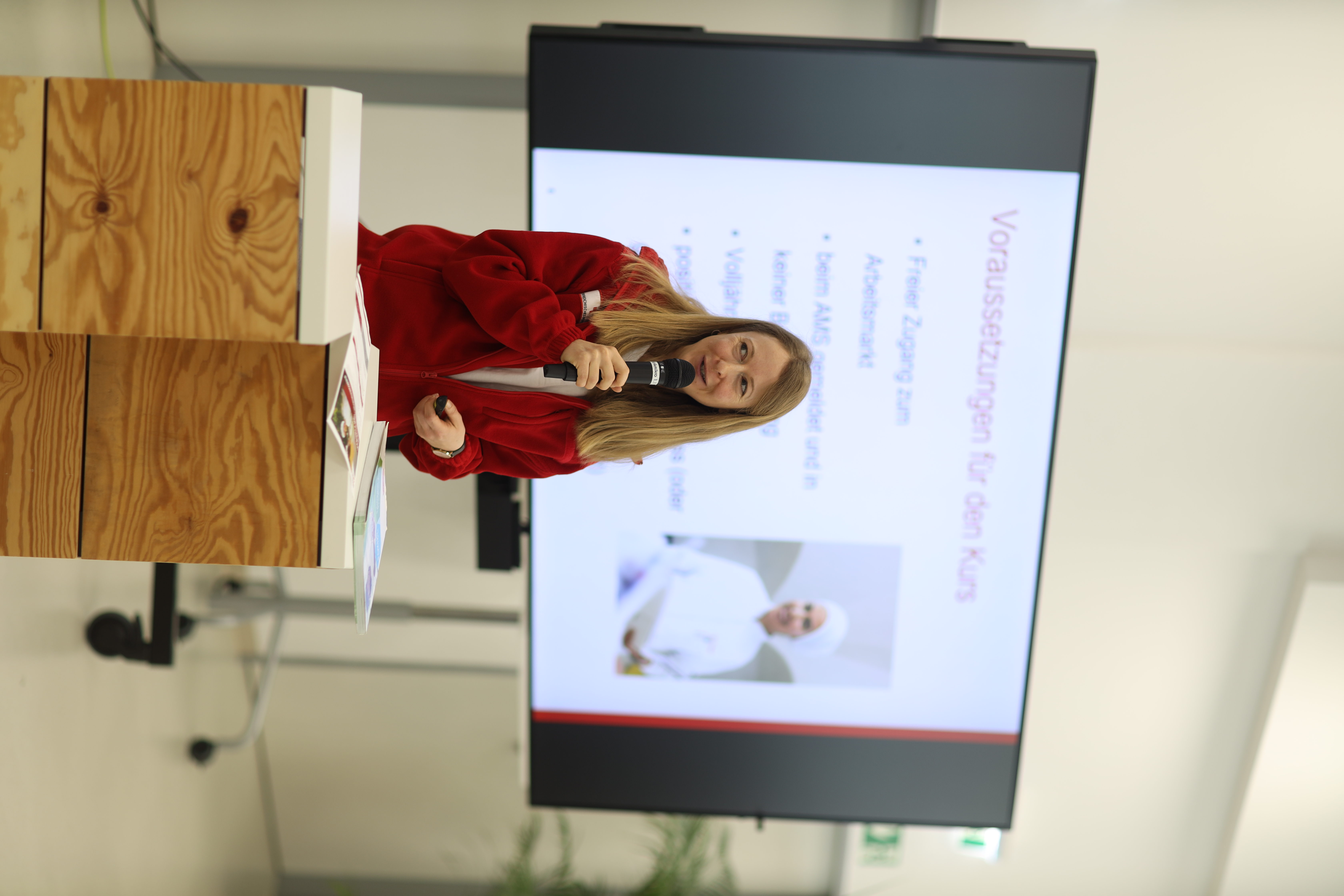 Mit dem Ziel, den Kolleg:innen von morgen alle wichtigen Informationen für ihren beruflichen Start im Bereich Pflege und Betreuung weiterzugeben, waren unsere Mitarbeiterinnen auf der Karrieremesse des ÖIF aktiv. Die Besucher:innen konnten ihre individuellen Fragen zur Pflege direkt unserer Regionalpflegedienstleiterin Sonja Schwab stellen und sich zur Ausbildung und offenen Stellen im Roten Kreuz informieren. So konnten die Besucher:innen, unabhängig von ihrer aktuellen Qualifikation, die jeweils relevanten Informationen für ihren weiteren beruflichen Weg erhalten. In einem Vortrag durften wir den vielen Interessierten auch unser Projekt migrants care vorstellen. Projektkoordinatorin Ines Lindner hat im Vortrag erklärt, wie der Kurs migrants care Personen mit Migrationshintergrund auf den Berufseinstieg nach einer Nostrifizierung oder die Ausbildung im Bereich Pflege und Betreuung vorbereitet.
