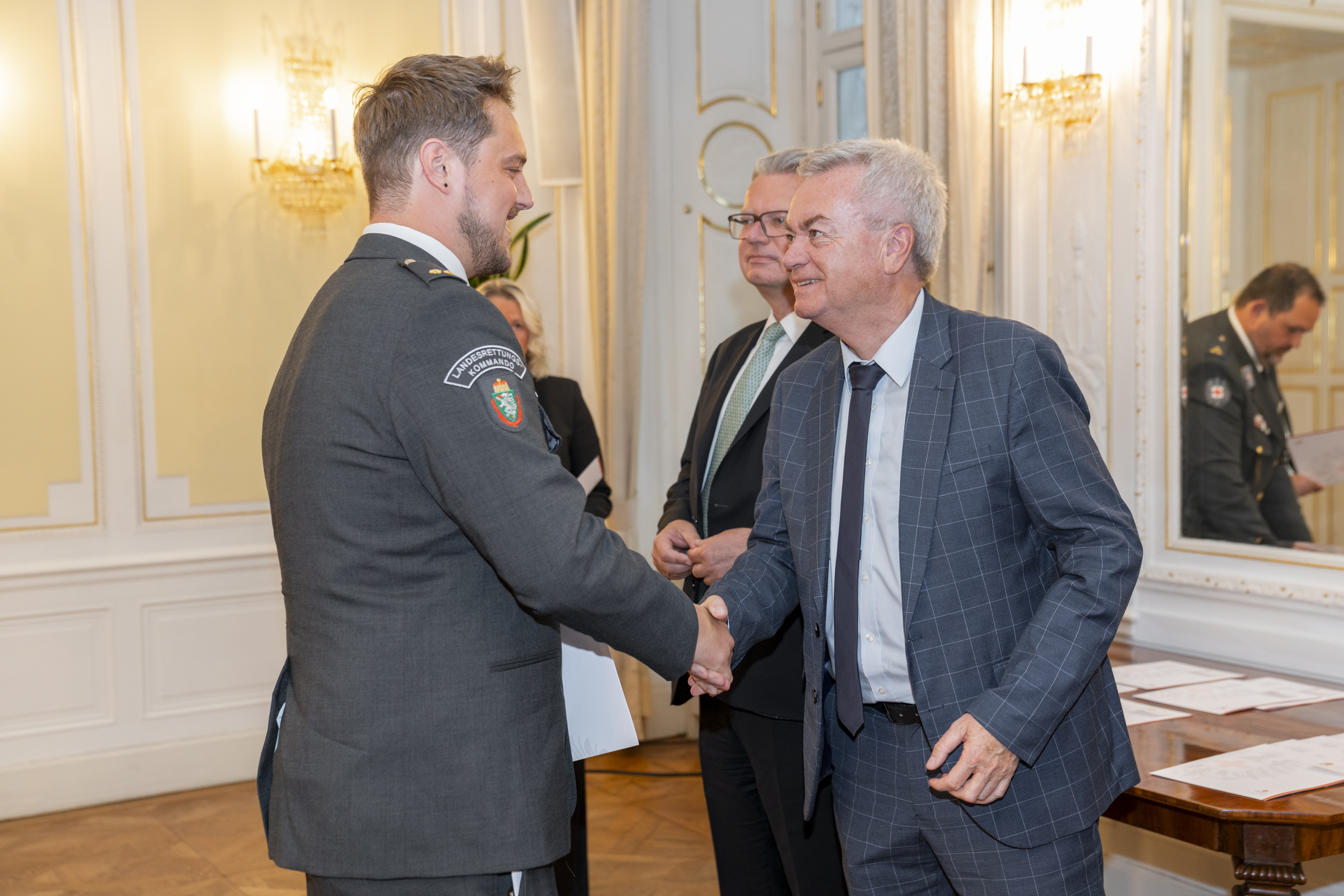 Am Montag, den 13. Mai wurden 24 neuen Offizier:innen des Roten Kreuzes Steiermark ihre Dekrete zu ihrem Ausbildungsabschluss überreicht – in feierlichem Rahmen in der Grazer Burg und unter Beisein von Rotkreuz-Präsident Mag. Dr. Werner Weinhofer, Landeshauptmann Mag. Christopher Drexler und Landeshauptmann Stellvertreter Anton Lang.