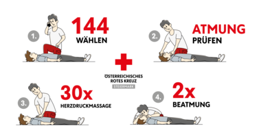 Wie war das noch einmal mit der Wiederbelebung? 30 Mal Herzdruckmassage, zwei Mal beatmen – oder war es 20 Mal drücken und einmal beatmen? Fragen, die viele ins Grübeln bringen. Was im Notfall wirklich zählt, ist allerdings gar nicht das perfekte Wissen, sondern vor allem zu handeln! Rotkreuz-Chefarzt Ass. Prof. Dr. Berthold Petutschnigg: „Erste Hilfe ist einfach und rettet Leben! Der Atem-Kreislauf-Stillstand ist ein lebensbedrohlicher Zustand, bei dem die betroffene Person auf sofortige Hilfe von Ersthelfer:innen angewiesen ist. Mit jeder Minute ohne Wiederbelebungsmaßnahmen sinkt die Überlebenschance um rund zehn Prozent.“ Trotz dieser klaren Fakten zeigte eine Umfrage Österreichischen Roten Kreuzes jüngst eine alarmierende Realität: Nur 58 Prozent der Bevölkerung trauen sich zu, im Ernstfall Wiederbelebungsmaßnahmen durchzuführen. 42 Prozent fühlen sich bei Wiederbelebungsmaßnahmen unsicher.