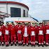 Das Logo des Roten Kreuzes Logo Slogan Aus Liebe zum Menschen unten