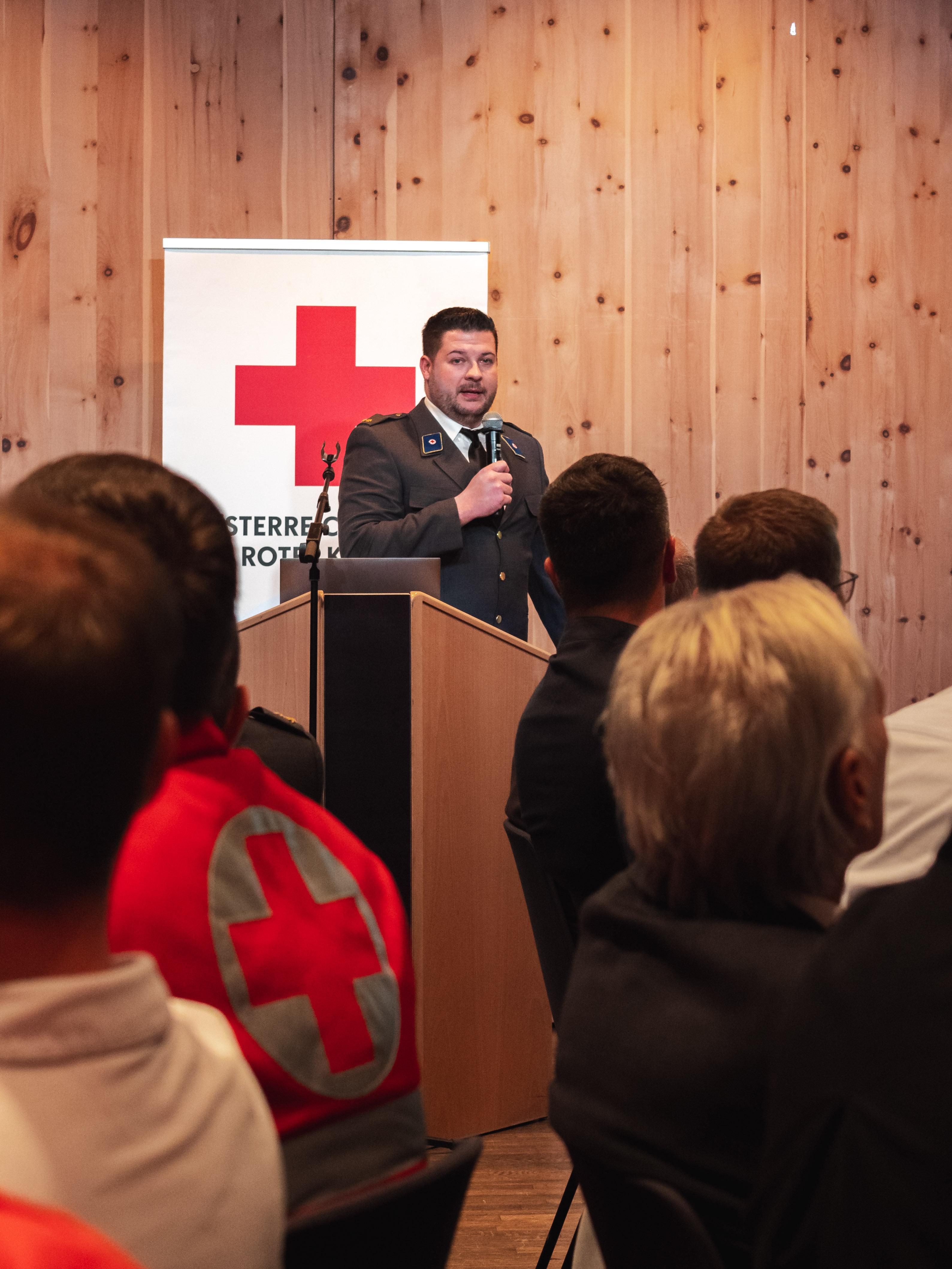 Deutlich wurde bei der Versammlung auch, dass sich die Aufgaben des Roten Kreuzes laufend weiterentwickeln. „Der Bereich der Gesundheits- und Sozialdienste nimmt kontinuierlich zu. Immer mehr Menschen benötigen Unterstützung in schwierigen Lebenssituationen – vom Besuchsdienst über die Rufhilfe bis hin zur Team Österreich Tafel“, erklärte Dominik Hasenberger, Referent für Gesundheits- und Sozialdienste beim Roten Kreuz Schwaz.