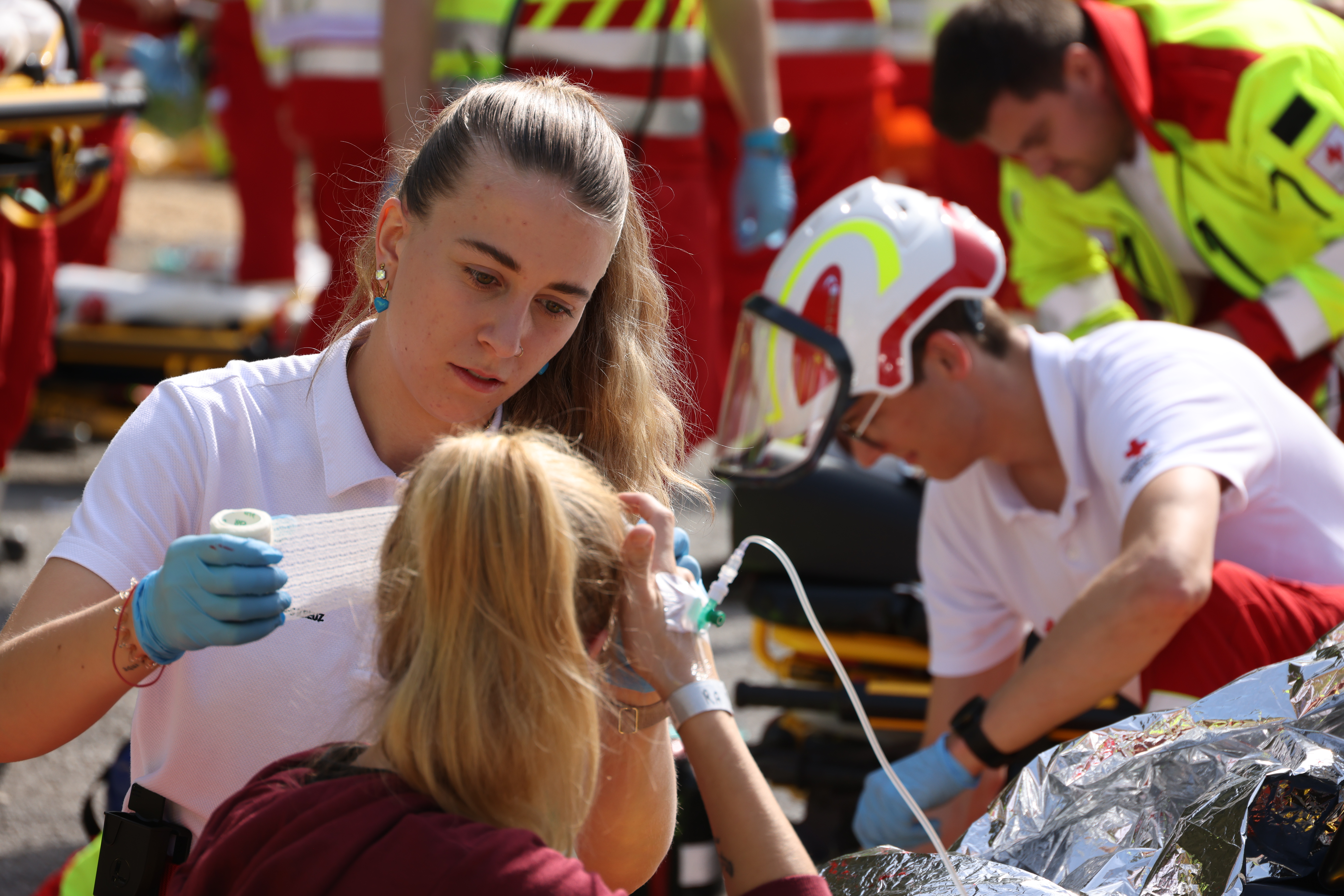 Ein komplexes und forderndes Einsatzszenario stand im Mittelpunkt einer groß angelegten Unfallübung des Roten Kreuzes Vorarlberg am vergangenen Samstag. Über einen Zeitraum von drei Stunden trainierten rund 170 Einsatzkräfte gemeinsam mit etwa 80 Statistinnen und Statisten das koordinierte Vorgehen bei einem schweren Verkehrsunfall mit zahlreichen Verletzten mit Schauplatz Gütlestraße in Dornbirn.