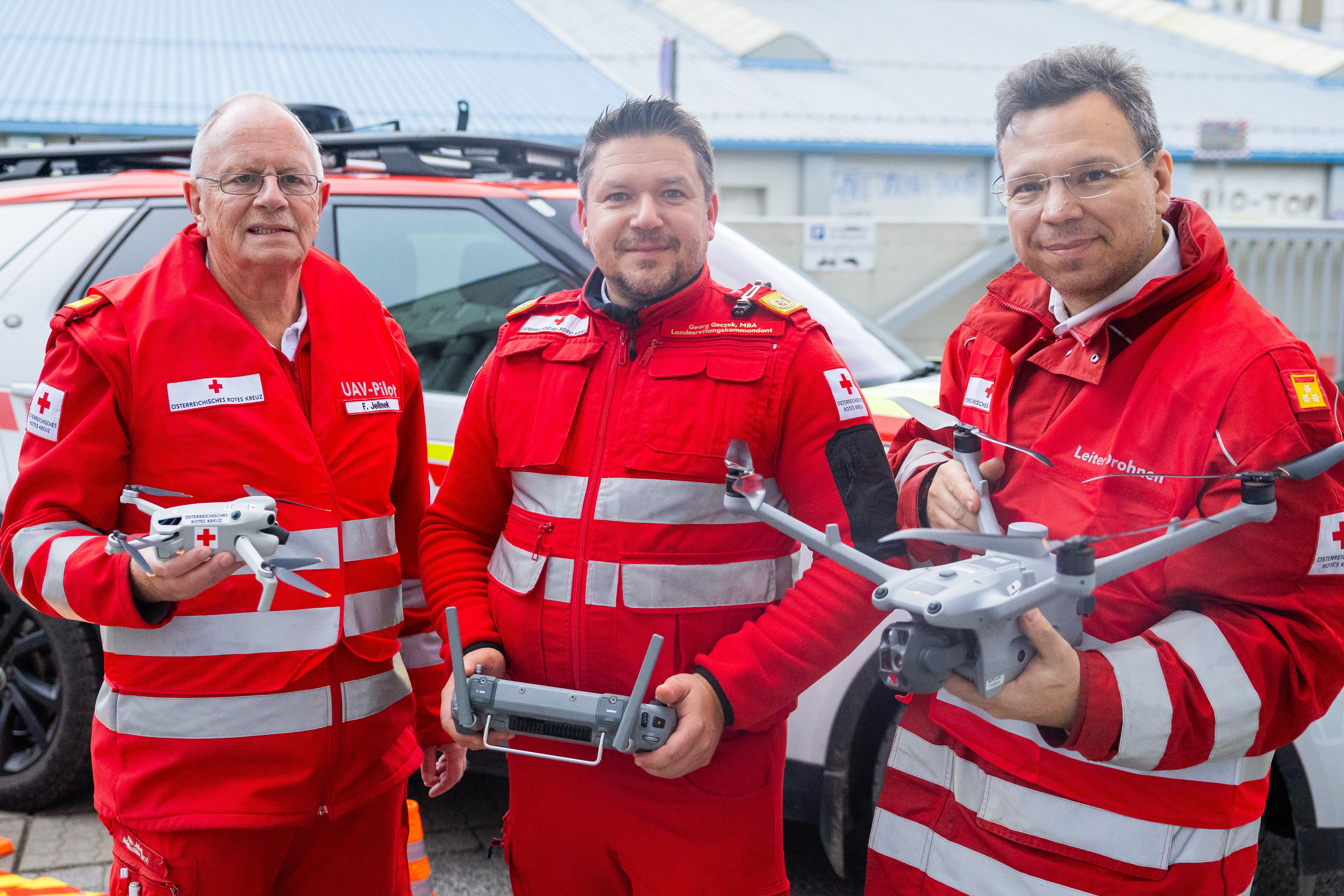 „Unsere Drohnen sind mit modernster Technik ausgestattet – darunter Wärmebildkameras für Personensuchen und KI-gestützte Auswertung von Luftbildern zur Einschätzung von Bewegungsflüssen und Dichteverteilungen “, erklärt Armin Fauland, der die Drohnenstaffel in ehrenamtlicher Funktion leitet. „Derzeit werden unsere Mitarbeiter*innen ausgebildet, ab dem ersten Quartal 2026 sind wir dann rund um die Uhr einsatzbereit.“