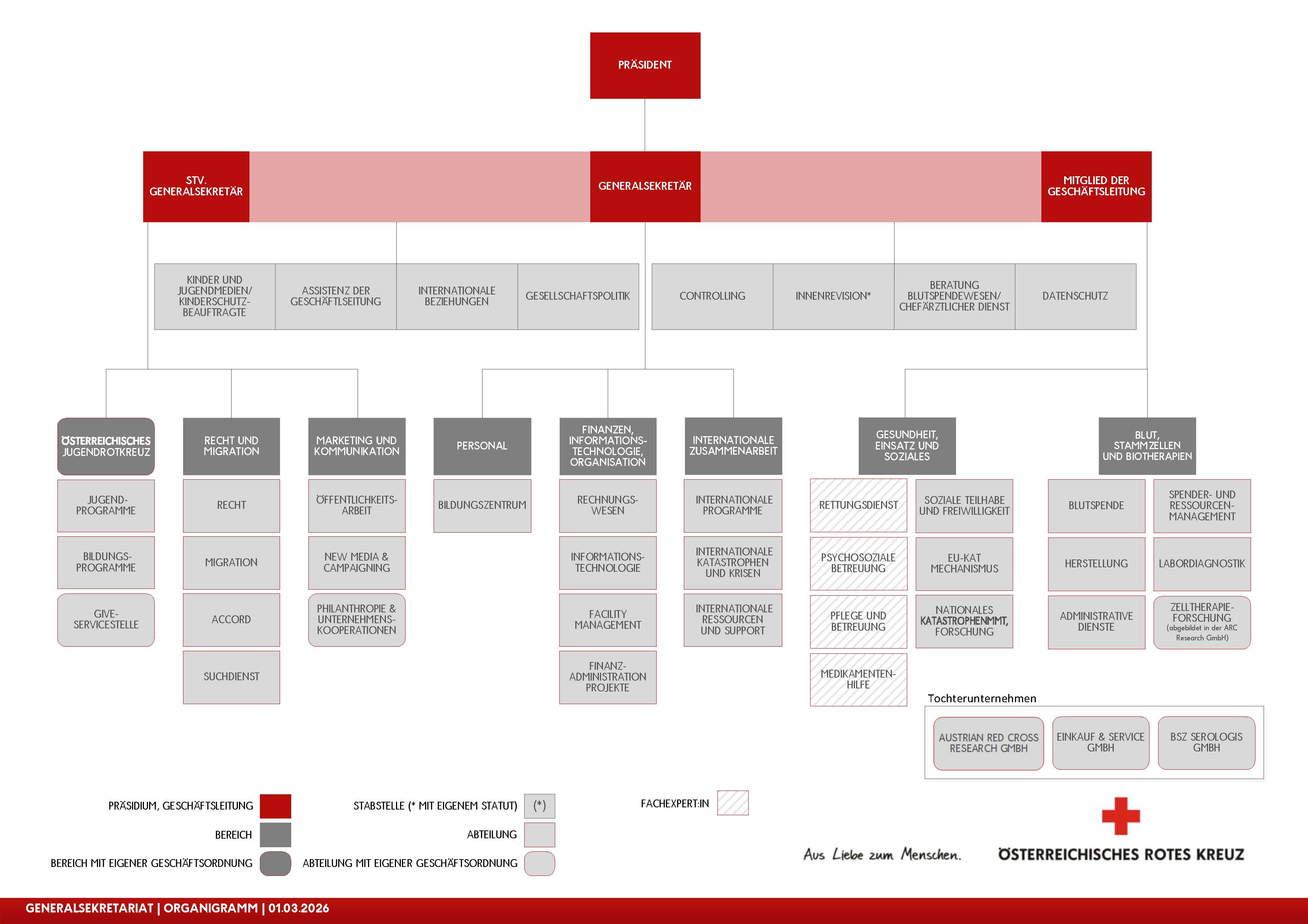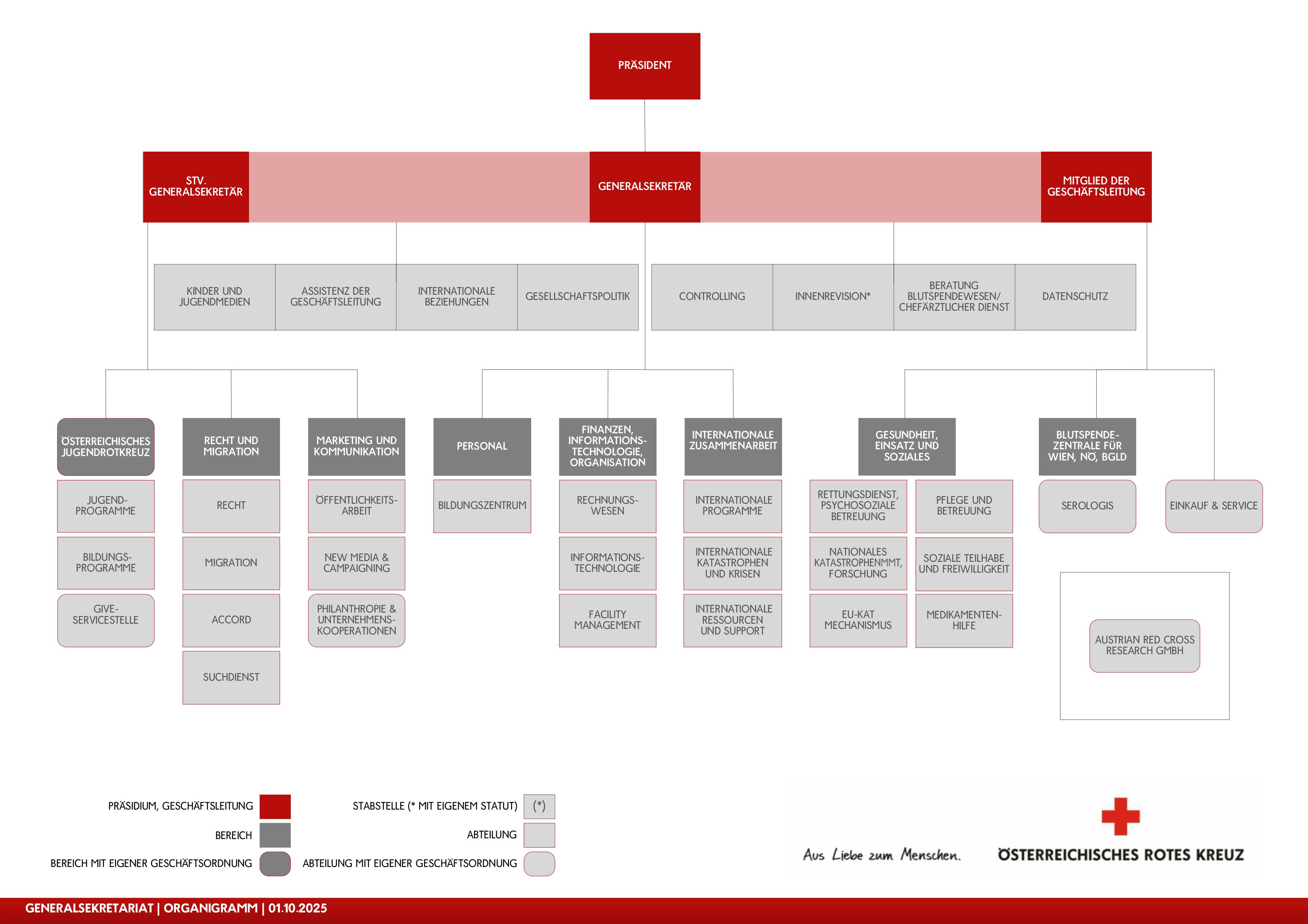 In Wien sind das Generalsekretariat und der Wiener Landesverband (Wiener Rotes Kreuz) angesiedelt, wobei es sich dabei um zwei verschiedene Unternehmen handelt.